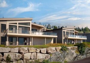 BJØRK er et sprekt hus som skiller seg ut fra mengden. Glass, lys og asymmetriske fasader er sentrale begrep i funkisarkitekturens verden, så også i BJØRK. Med sine spenstige, store vindusflater og rause, utvendige terrasser er dette et drømmehus. Boligen er forseggjort på alle områder, og har en tydelighet i arkitekturen som utstråler både særpreg og stil.