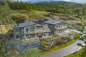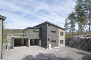 Markenrudveien 10-16 består av 2 horisontdelte tomannsboliger. Boligene ligger vakkert til med fantastisk utsikt ut over Eikeren og med nærhet til Eidsfoss med sin lange historie. Et område mye å by på, flott natur og nærhet til skole og barnehage. Boligene er bygget med elementhus fra Husvik SIA og er i en tidsriktig og moderne form.