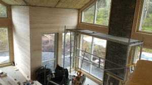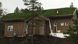 Prosjekt Hytte Skrim Byggeår 2016 BRA 129 m2 Rolle: Prosjektledelse og Ansv PRO/ UTF tømrerarbeider. Hytte med hems og anneks levert på Skrimfjellet Kongsberg kommune. Hytten er bygget med elementer fra husfabrikken Husvik SIA og montert og komplettert på plassen. Torv på taket. Elektrisk oppvarming med varmekabler, innvendige kvaliteter med heltregulv, panelte vegger samt flis på gulv i vaskerom, bad, entre.