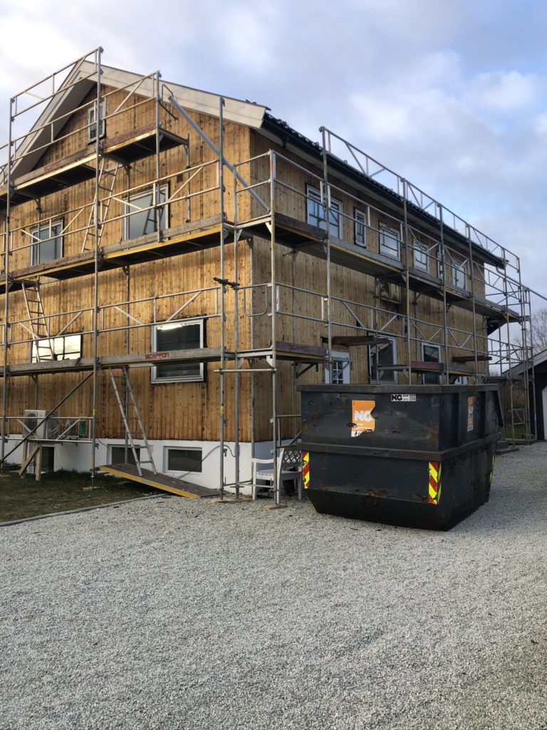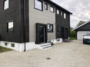 En jobb i samarbeid med Glava Tech. I denne to-mannsboligen har Thorrud montert vindsperre, satt inn nye vinduer, dører, montert balkonger, terrasser og levegger. I tillegg har vi montert ventilasjonsanlegg i boligen. Glava Tech har montert utvendige isolasjons-elementer.